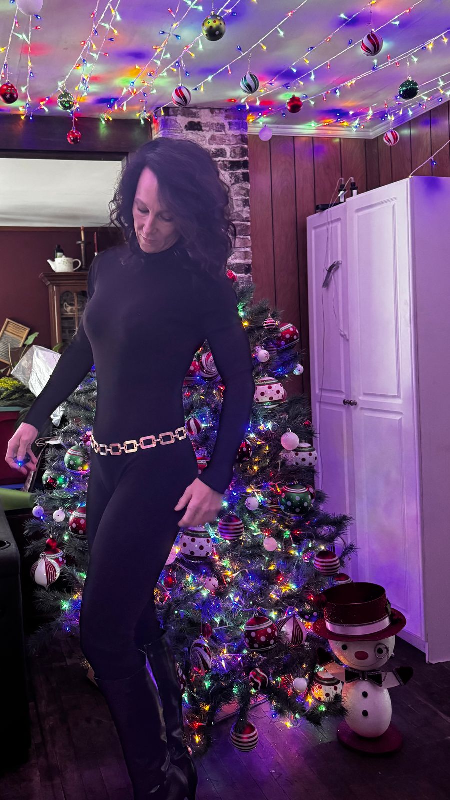 This is so sexy and looks great with a chain belt. The only drawback is the zipper. If you aren’t very flexible you will need someone to zip and unzip for you. I am long waisted and a lot of jumpers don’t fit well. I sized up one size and it fits perfectly!