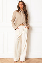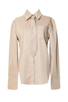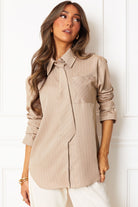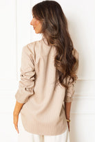 ReeseTaupe Stripe Button Down Top