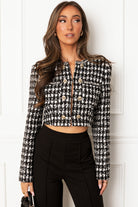 RenataBlack and White Tweed Crop Jacket