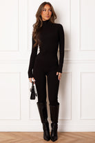 Your winter fit just got that much better thanks to the Alina Black Turtleneck Jumpsuit! Featuring stretchy ribbed fabric, a turtle neckline, long sleeves, a zipper up the back, and a fitted silhouette. Wear this jumpsuit alone with some knee-high boots or layer over a puffer vest to complete the fit!