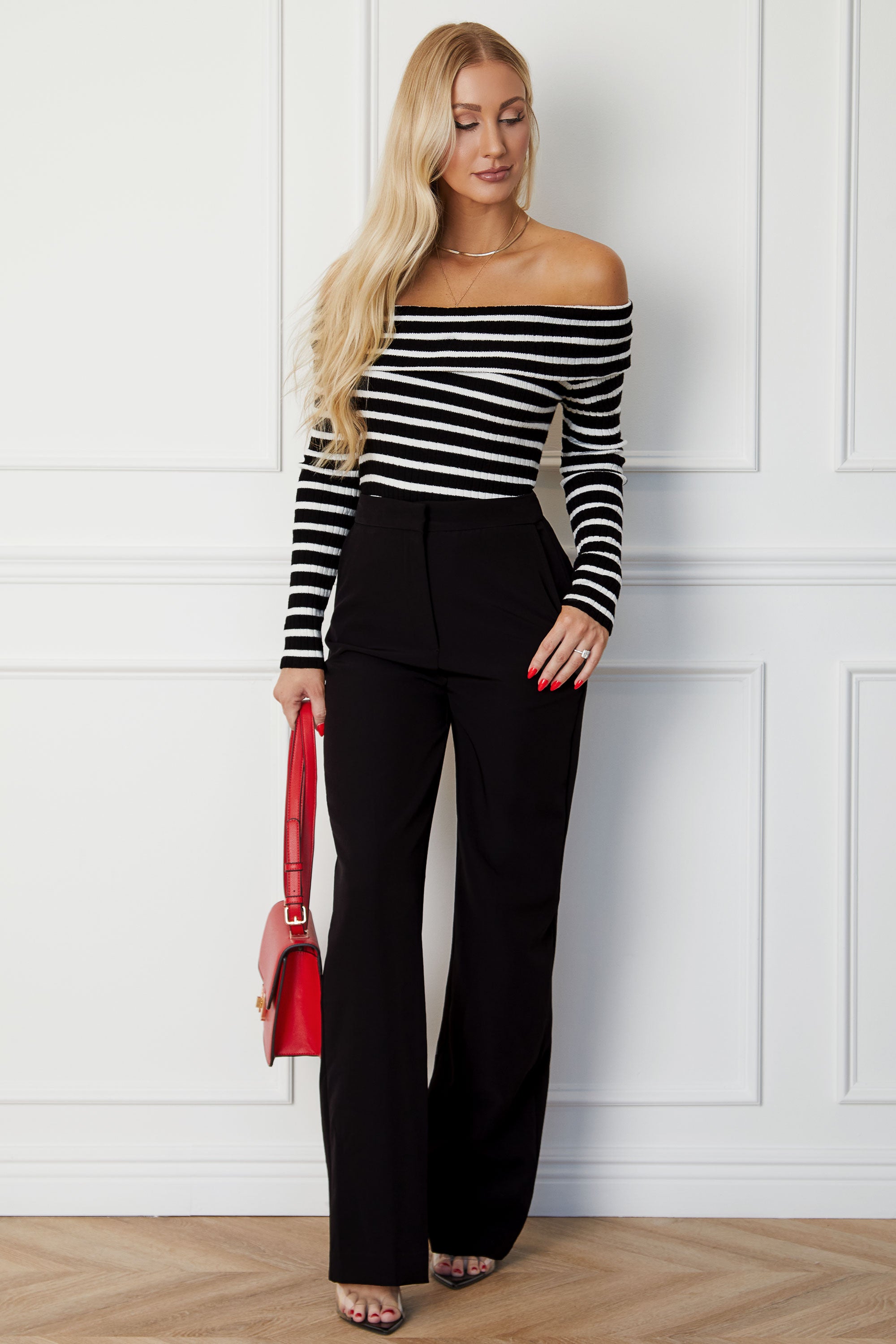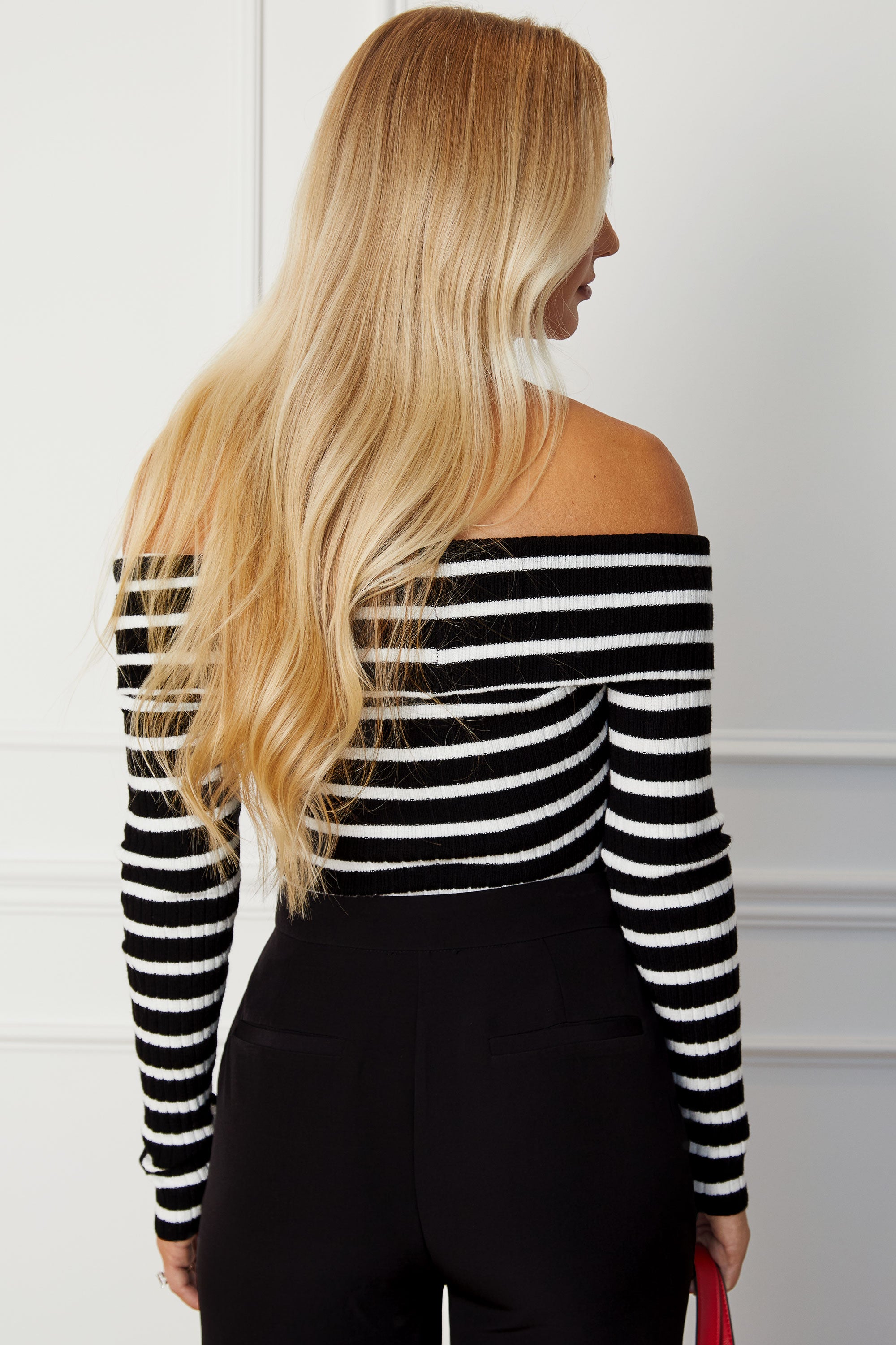 ChristinaBlack and White Stripe Off Shoulder Top