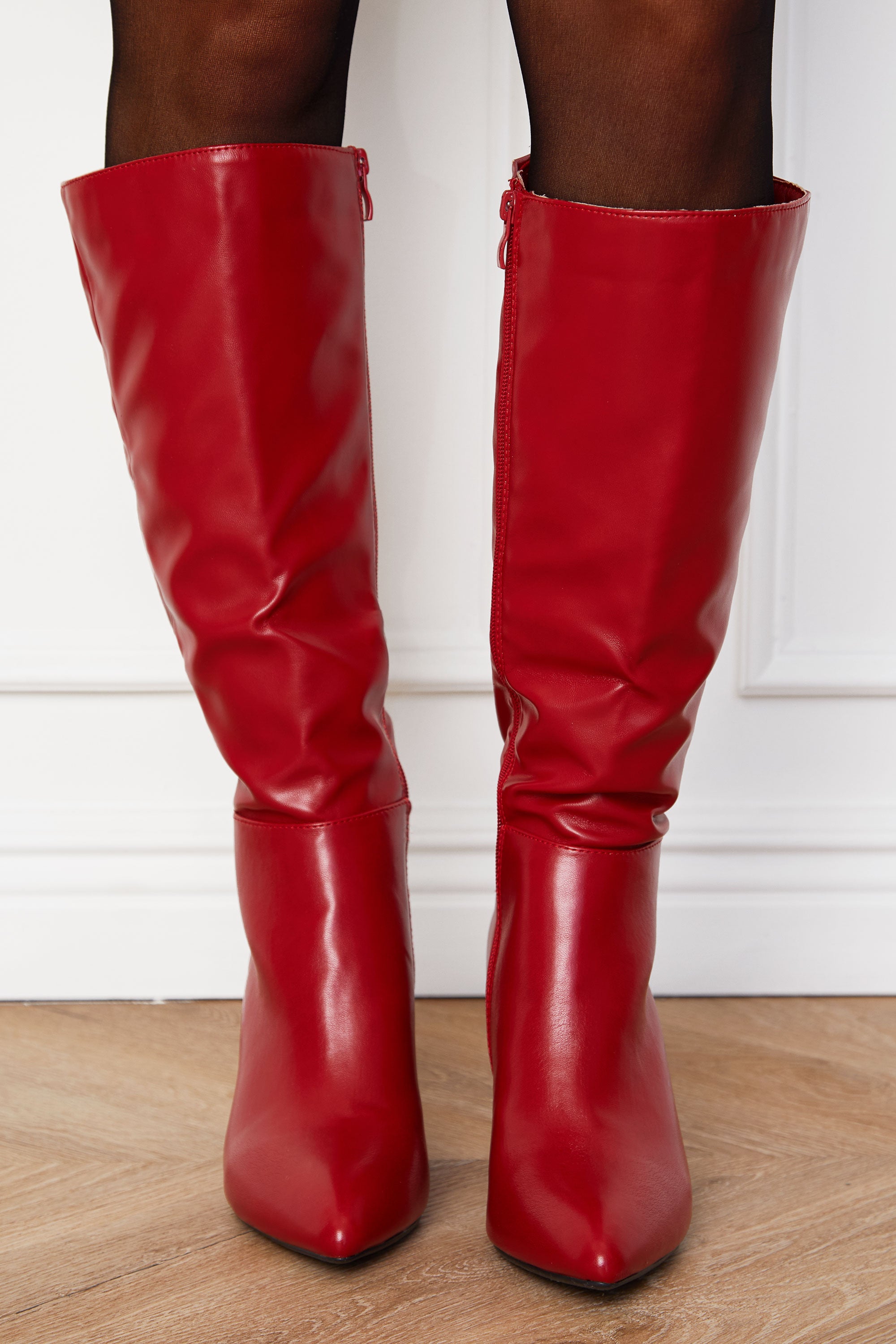 1 reviewIndulge yourself with the Jessica Red Boots - the ultimate statement piece for any wardrobe. These boots boast a secret zipper for effortless wear and stunning block heels for a touch of sophistication. Elevate your style game with these perfect black boots.