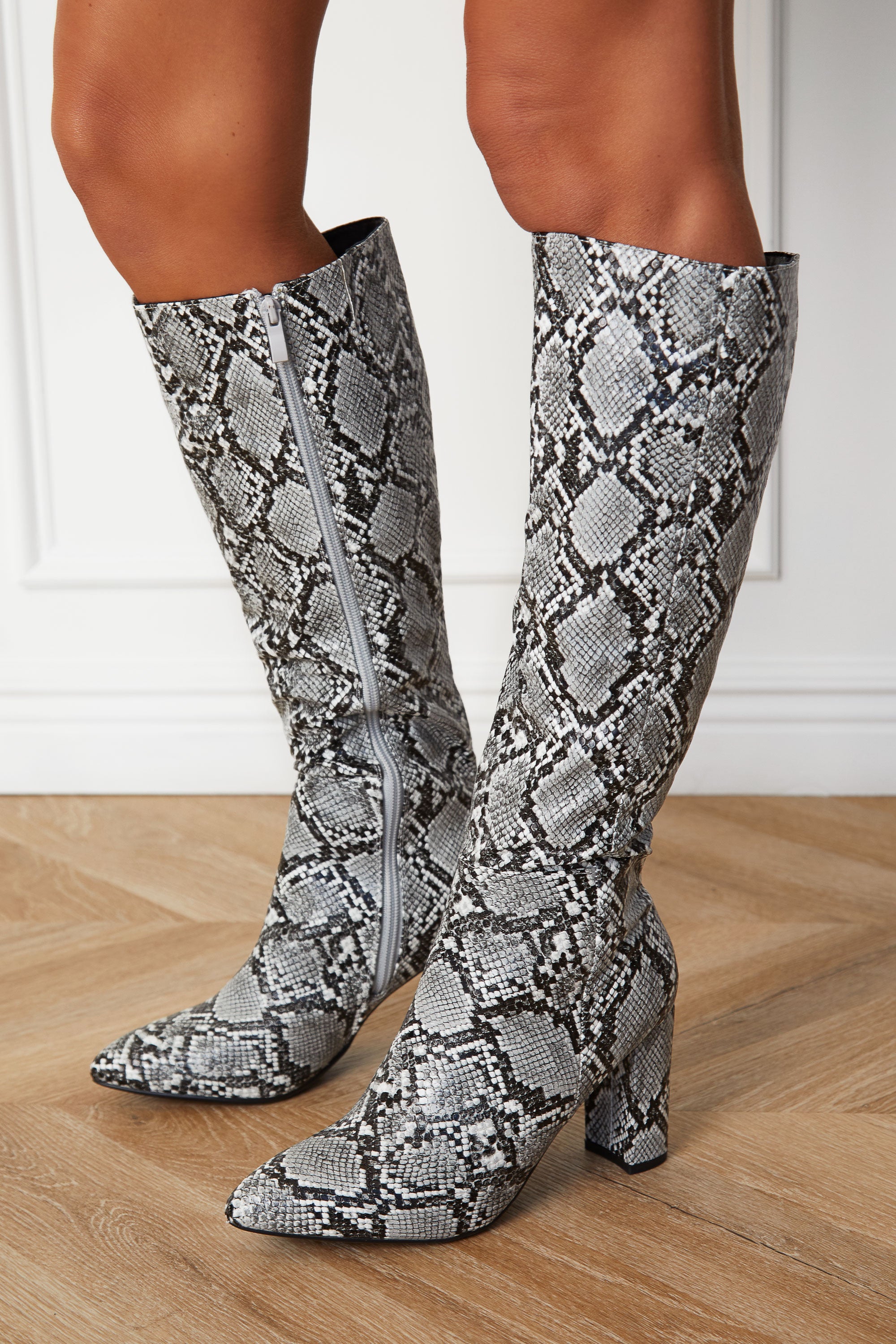 Indulge yourself with the Jessica Snake Boots - the ultimate statement piece for any wardrobe. These boots boast a secret zipper for effortless wear and stunning block heels for a touch of sophistication. Elevate your style game with these perfect snake boots.