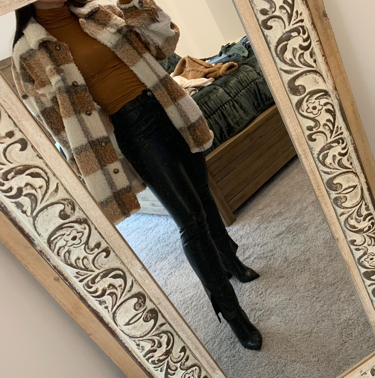 Your closet is begging you for these oh-so-flattering vegan leather pants! The Napa Vegan Leather Black Pants feature chic vegan leather material, 5 pockets, belt loops around the waist, zipper front closure, silver button, a slim fit, and side slit hems. Style these pants with our Right Time Sweater to complete the look!
