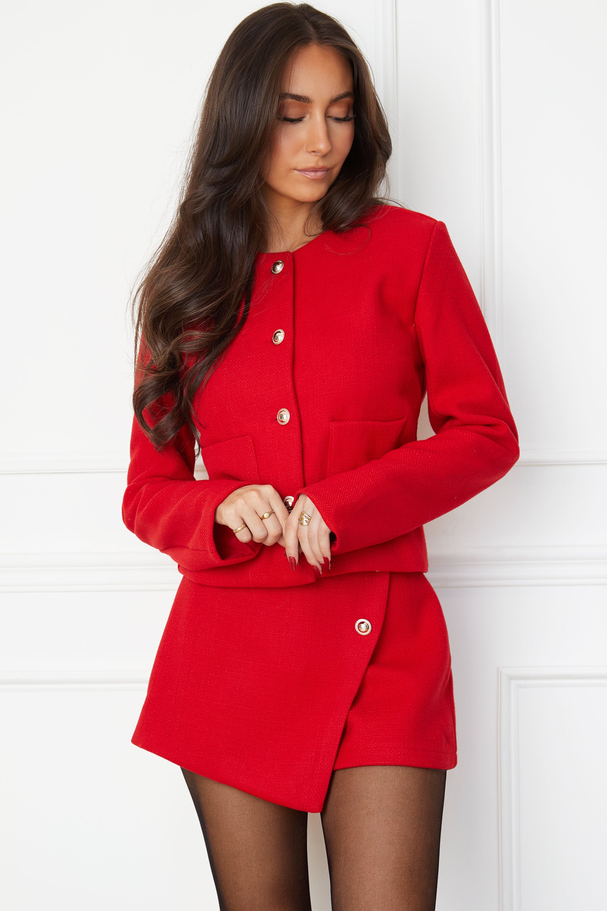 Indulge in the lavishness of our Marieanne Red Tweed Jacket. Inspired by old money and designer aesthetics, this jacket exudes sophistication. The stunning bold red shade is enhanced by gold buttons, adding a touch of luxury to this piece. Elevate your style with this exclusive jacket.