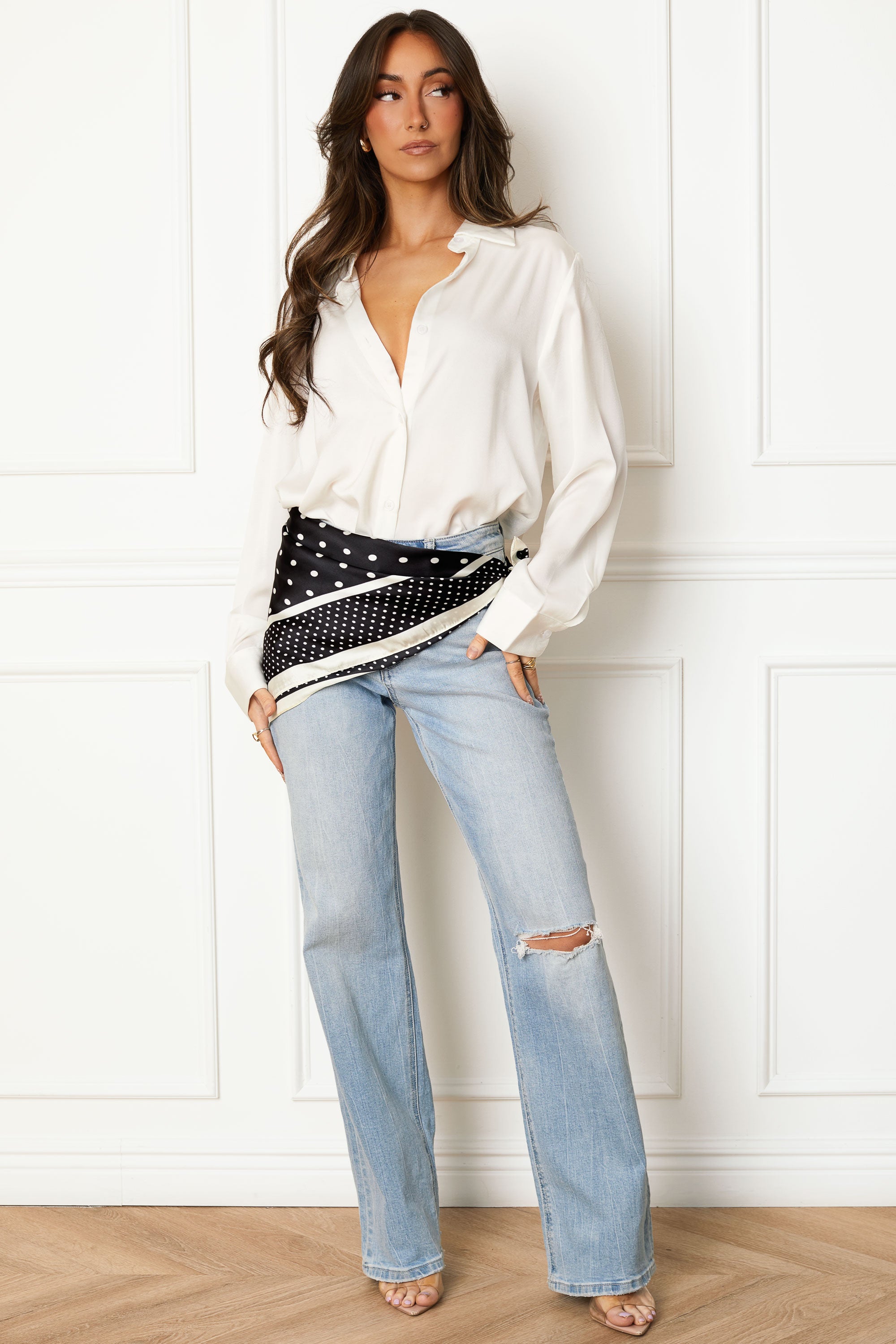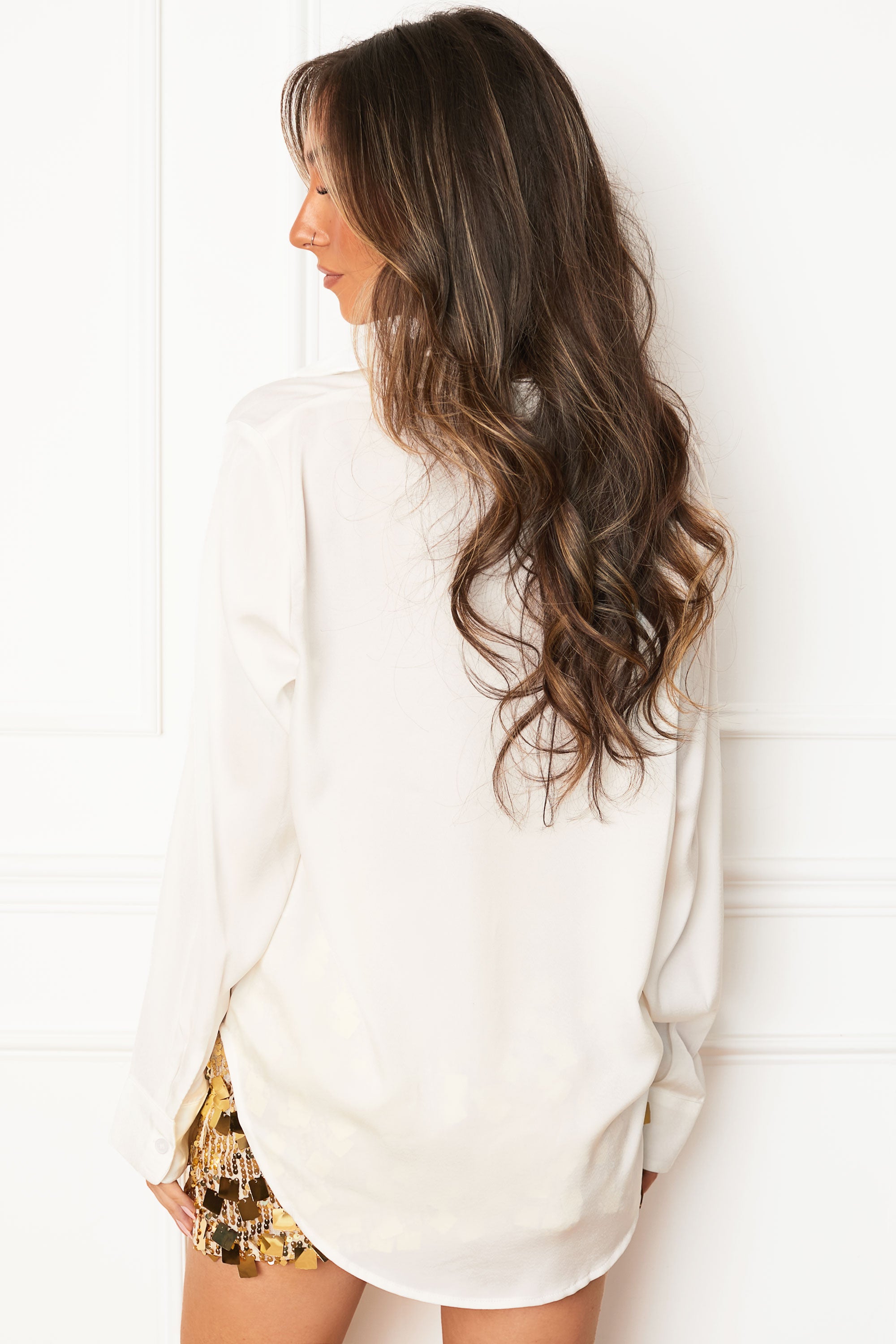Our oh so dreamy Spending Time White Satin Button Down Top is our latest obsession! With so many ways to wear it how could you go wrong? Featuring a light satin material, collared neckline, white buttons down the placket and on the sleeve cuffs, and a high low side rounded hemline.