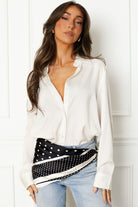 SpendingTime White Satin Button Down Top