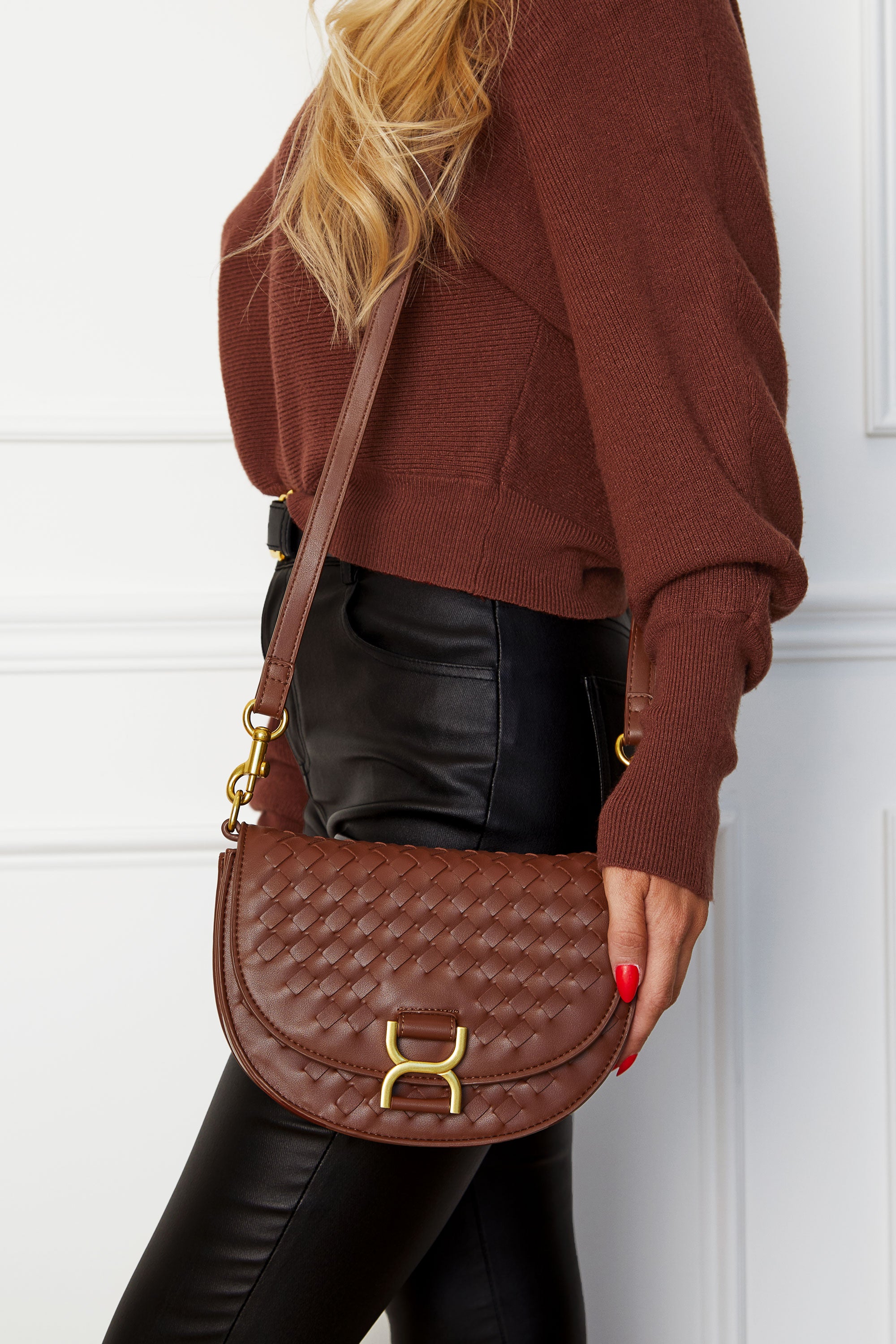 1 reviewIntroducing the Heidi Chocolate Woven Crossbody Bag, a designer inspired classic woven bag perfect for any occasion. Crafted with luxurious details, this bag is a must-have for any fashion-forward individual. Effortlessly elevate your style with this elegant and exclusive piece.