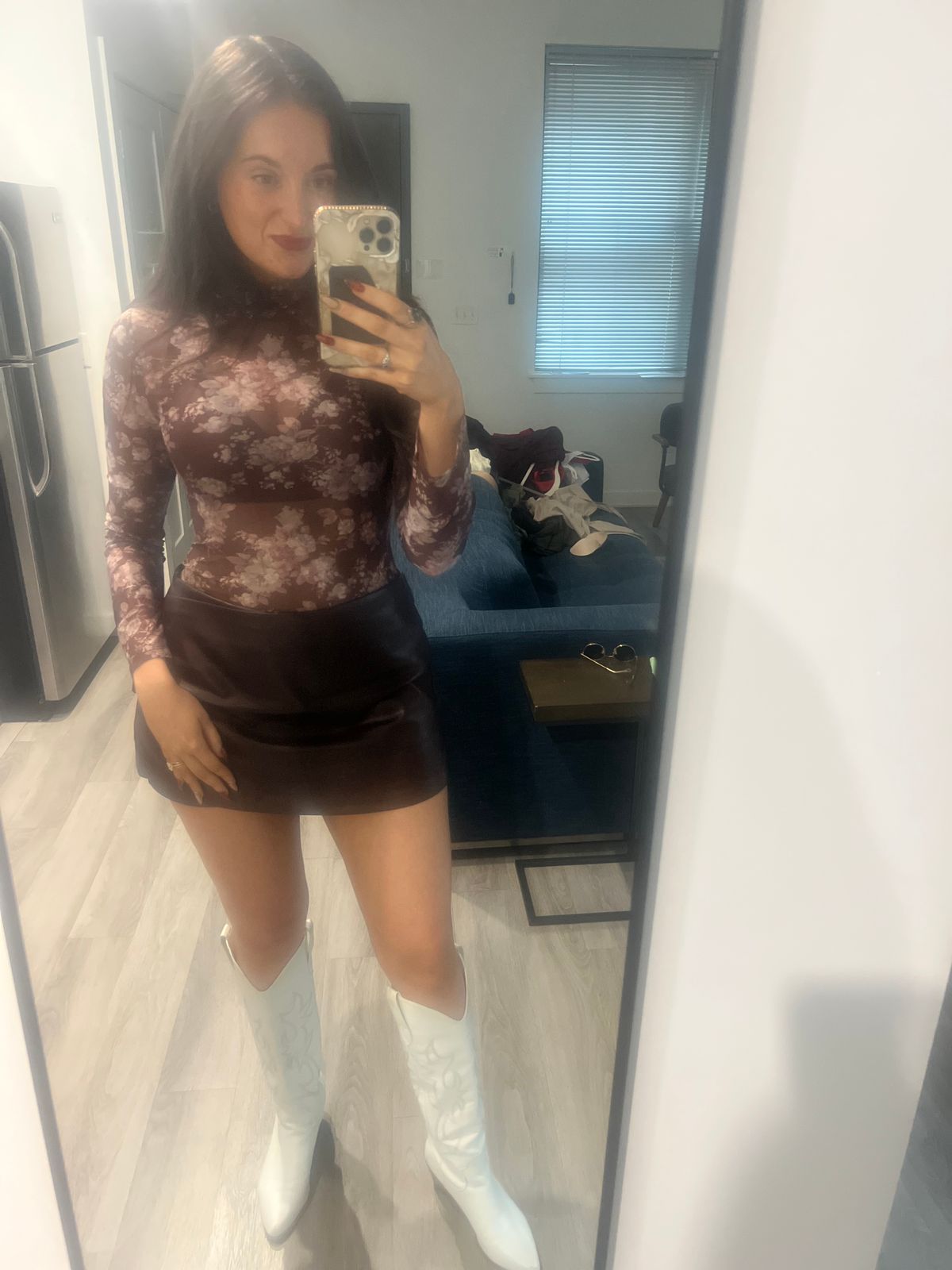 Absolutely gorgeous piece to add to your fall/winter collection. Fits like a glove and is so flattering. Nice quality vegan leather. Looks amazing with the coordinating off-the-shoulder bodysuit.