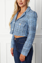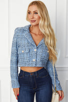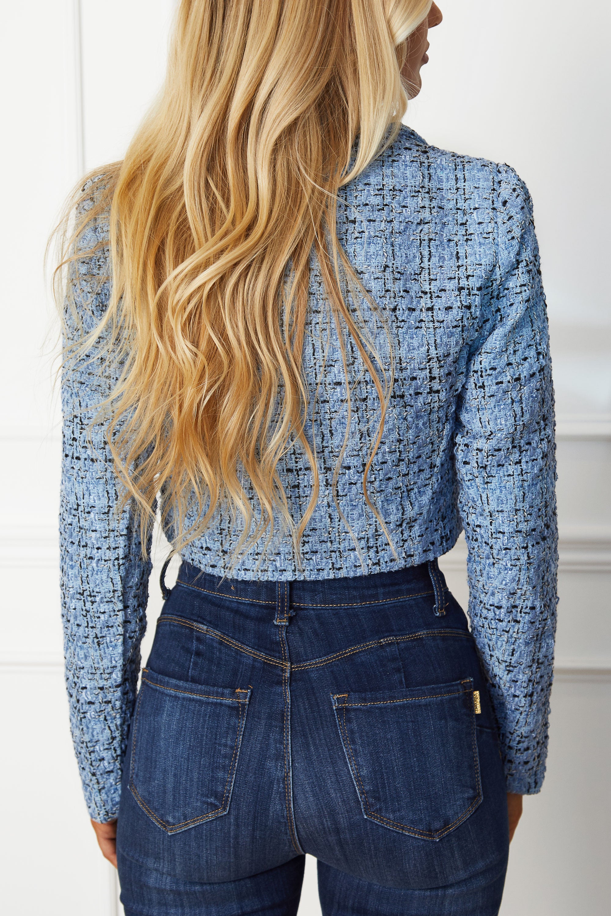 1 reviewBe the epitome of elegance with our Dionne Blue Tweed Jacket. This high-quality blazer features luxurious tweed fabric and stunning antique gold pearl buttons. Perfect for adding a touch of sophistication to any look. Time to elevate your style game!