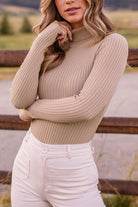 TooTrue Khaki Ribbed Turtleneck Bodysuit