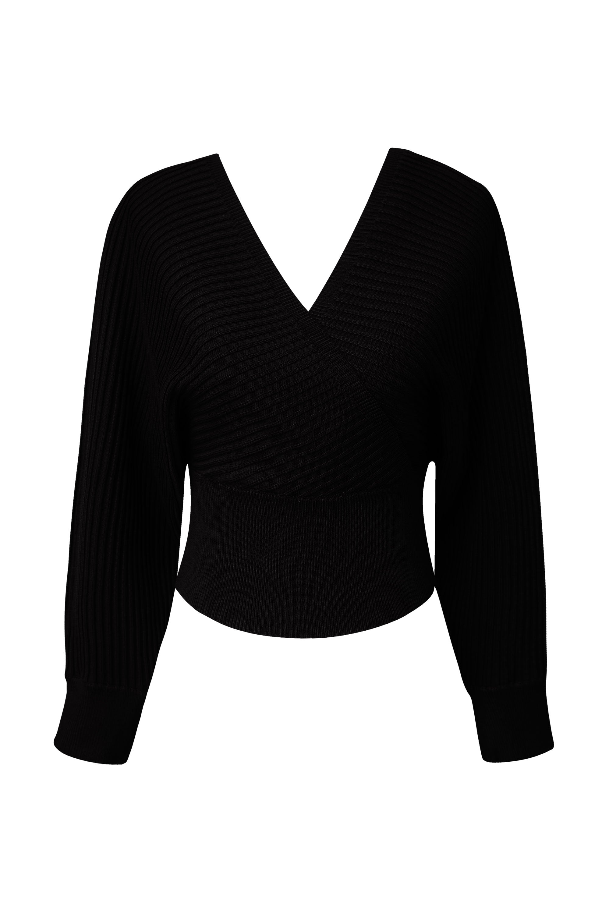 Indulge in the luxurious softness of our Diane Black Ribbed Sweater Top. A classic wrap design meets elegant style, making this top a wardrobe essential. Crafted from the softest fabric, it is perfect for cooler days and nights. Elevate your look and embrace the warmth with our sweater top.