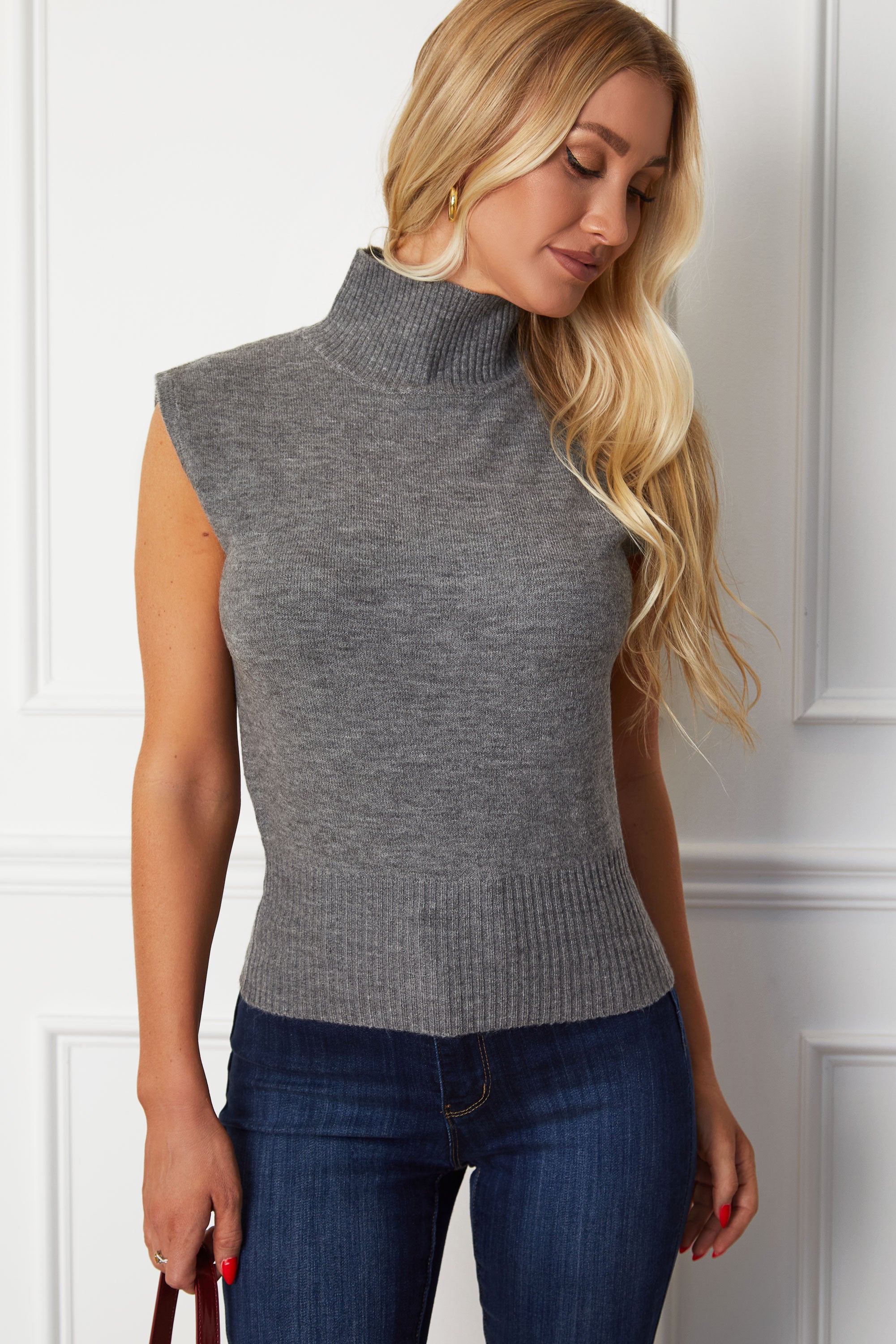 SophieCharcoal High-Neck Sleeveless Sweater Top