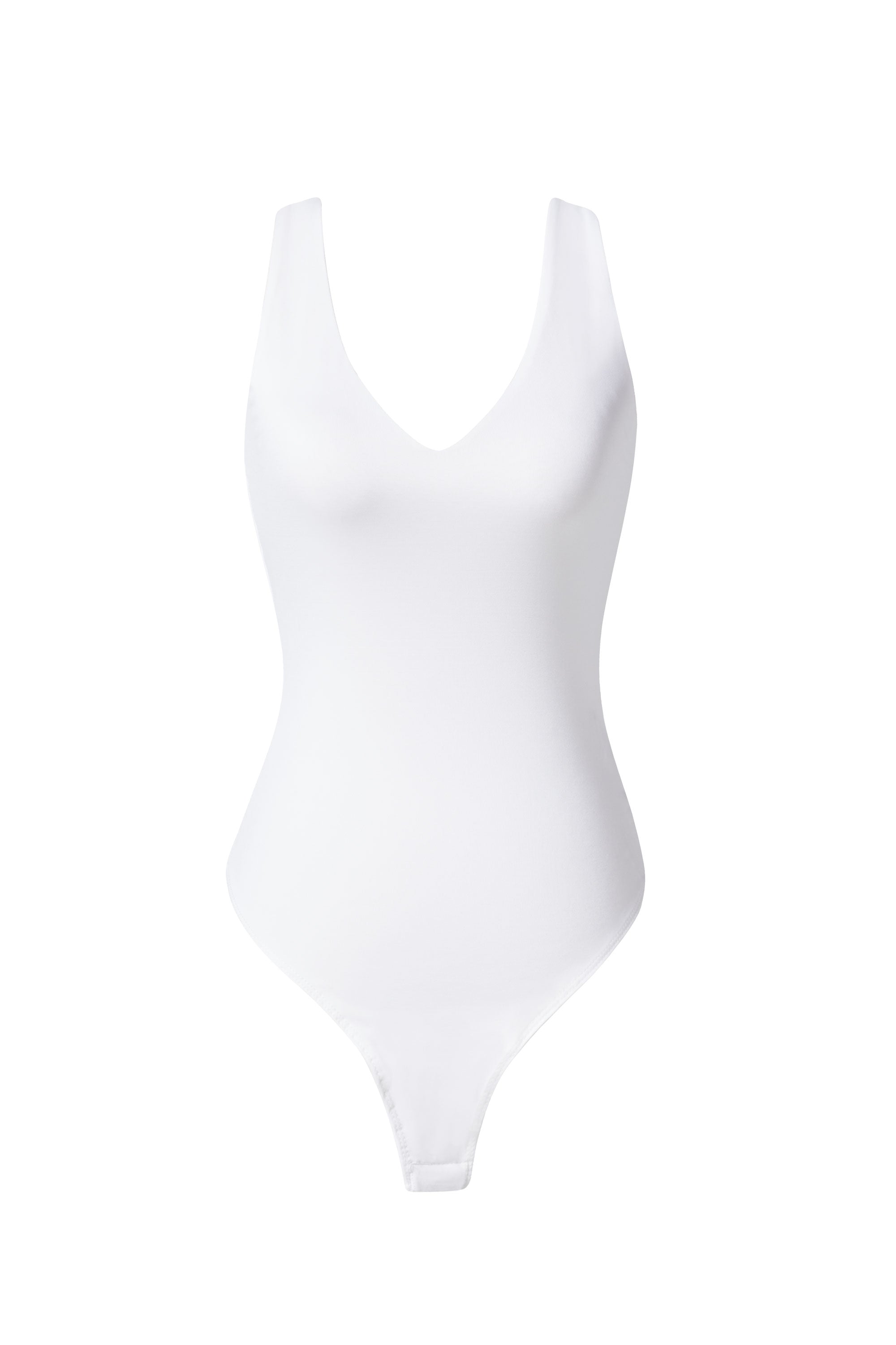 Get ready to slay in the Stacie White Bodysuit! This vneck bodysuit is double lined, making it perfect for summer. Rock it with your favorite high-waisted bottoms for a chic and effortless look. Get it now for your summer wardrobe!