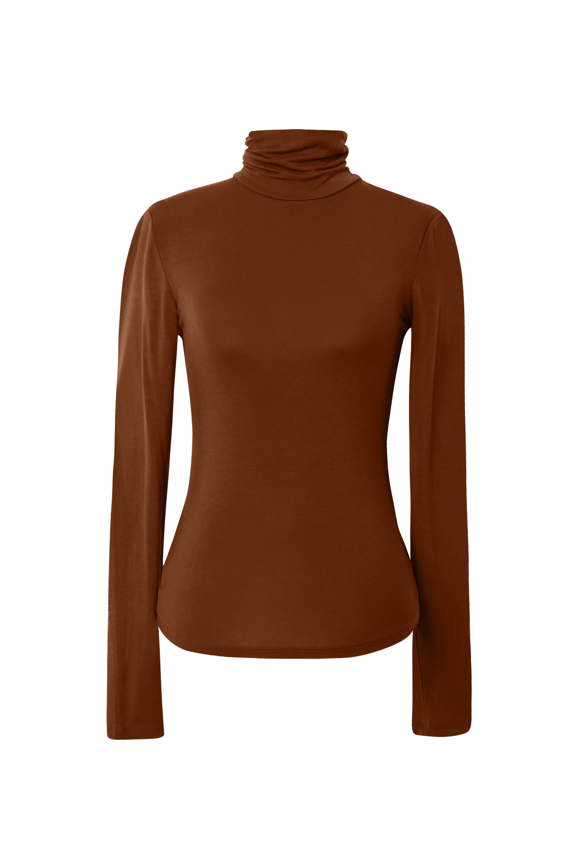 Elevate your wardrobe with the Winifred Brown Turtleneck Top. Made from a luxurious, soft fabric, this wardrobe essential will keep you comfortable and stylish all day long. Perfect for any occasion, it's a must-have for the fashion-forward individual.