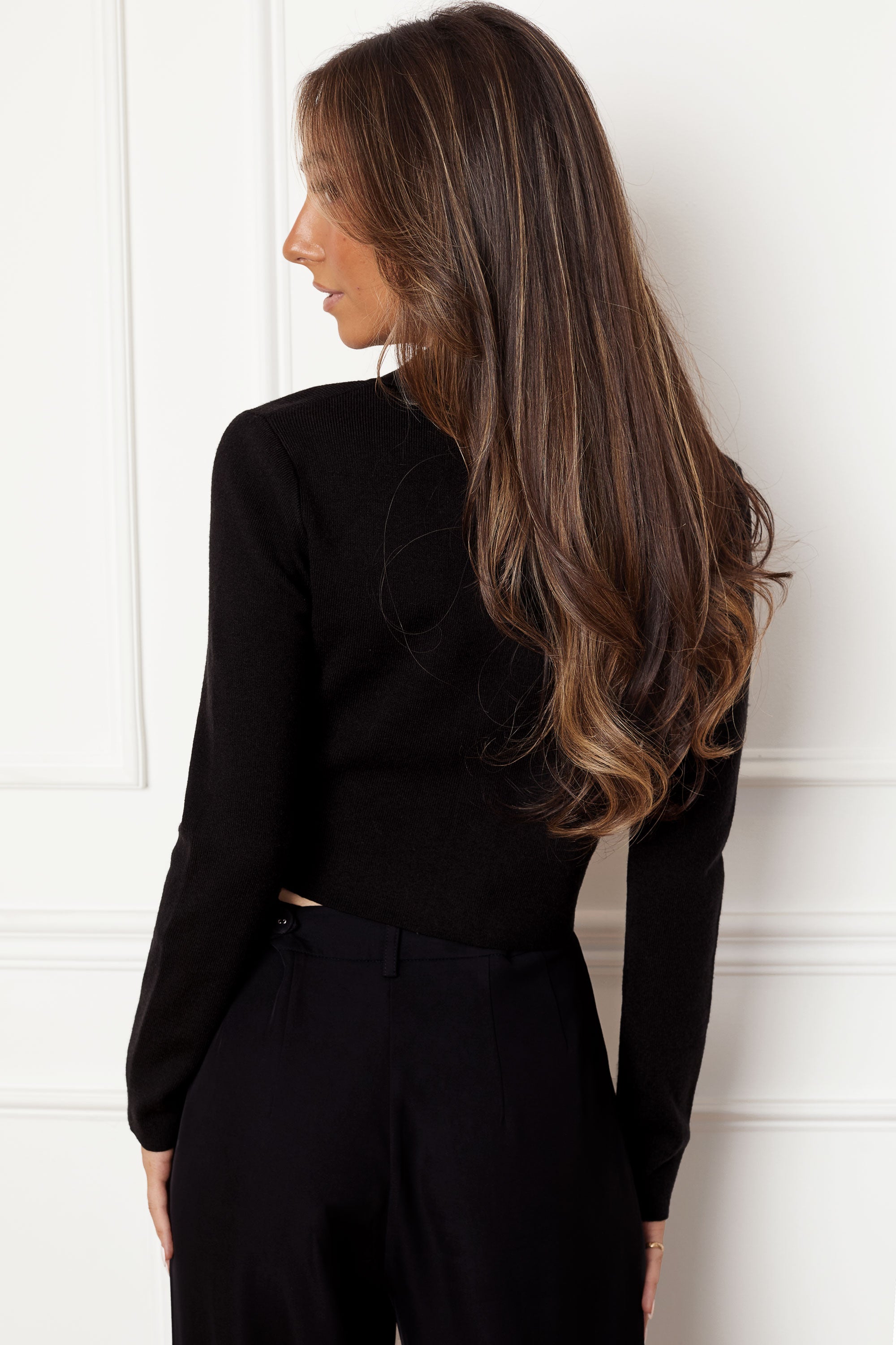 MadelineBlack and Cream Striped Boatneck Crop Top