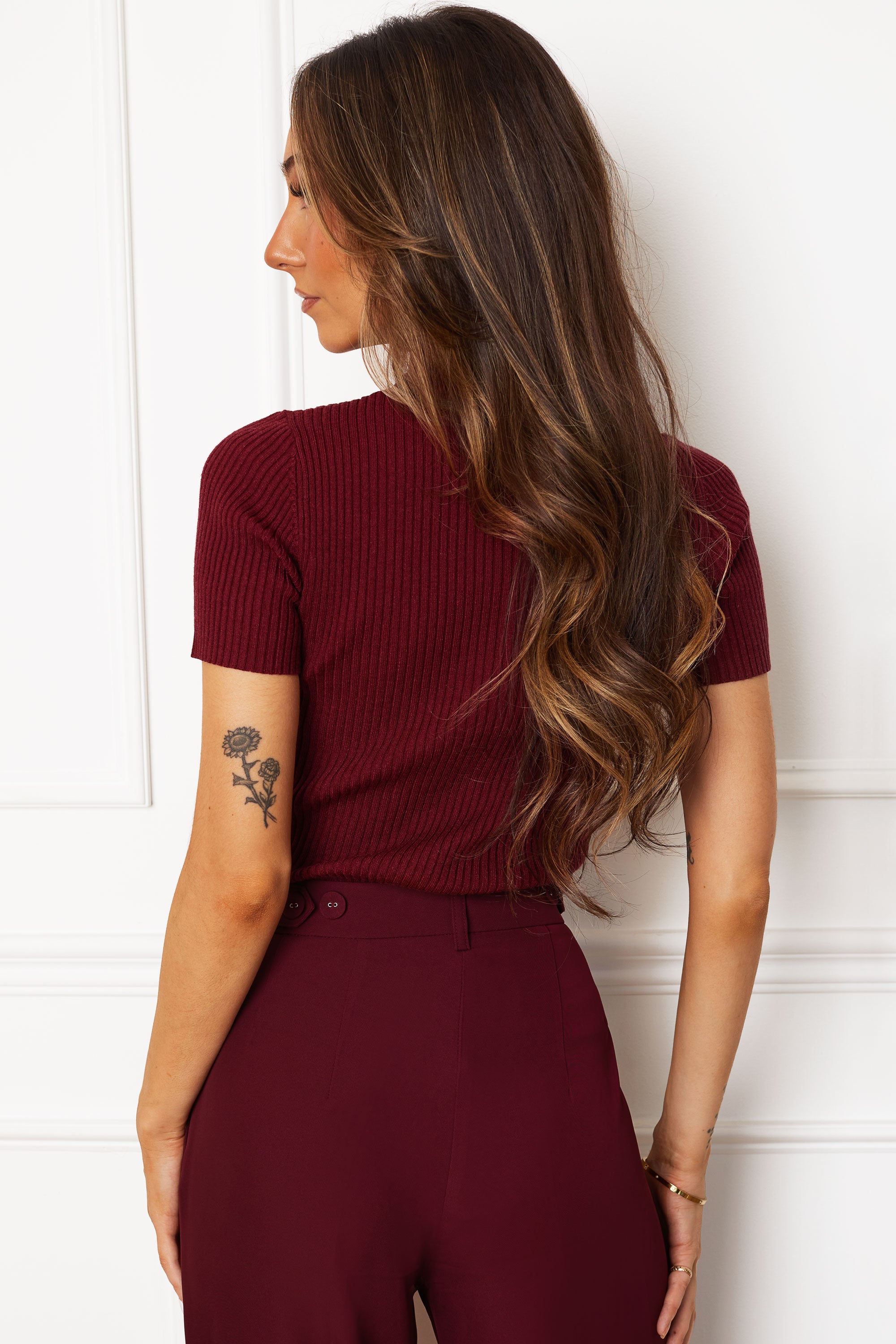 MatteaBurgundy Sleeveless High Neck Sweater Top