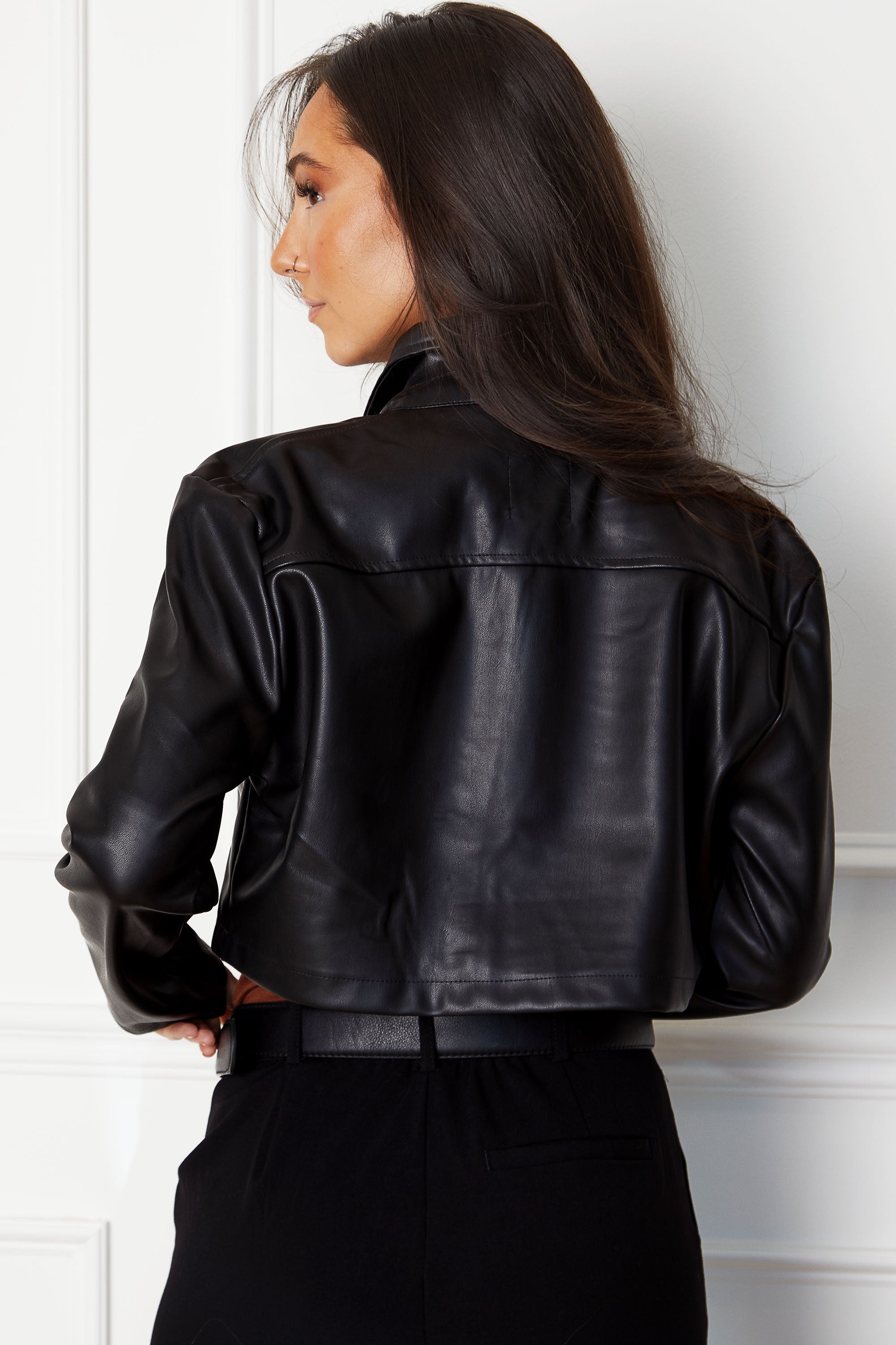 IrmaBlack Vegan Leather Cropped Jacket