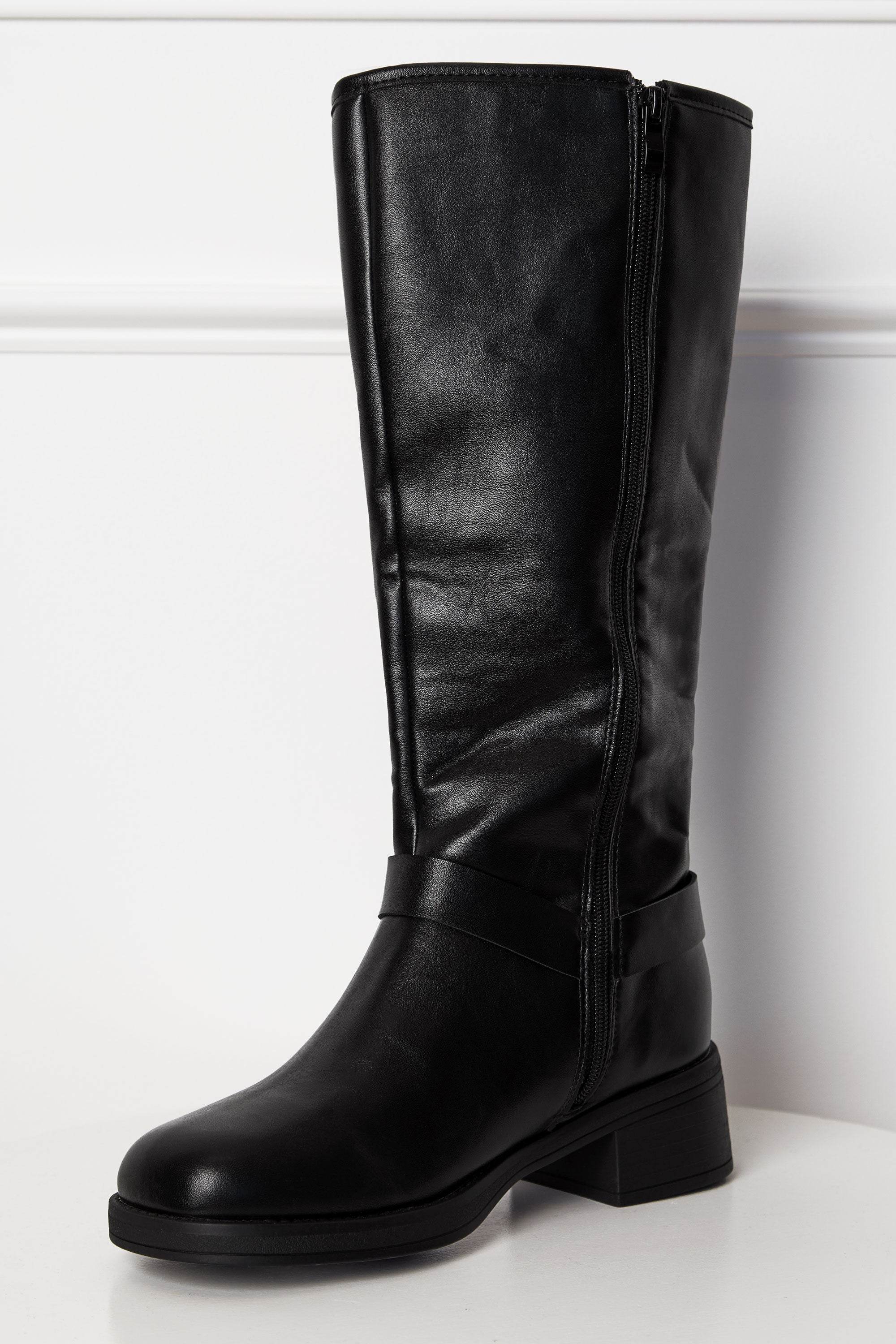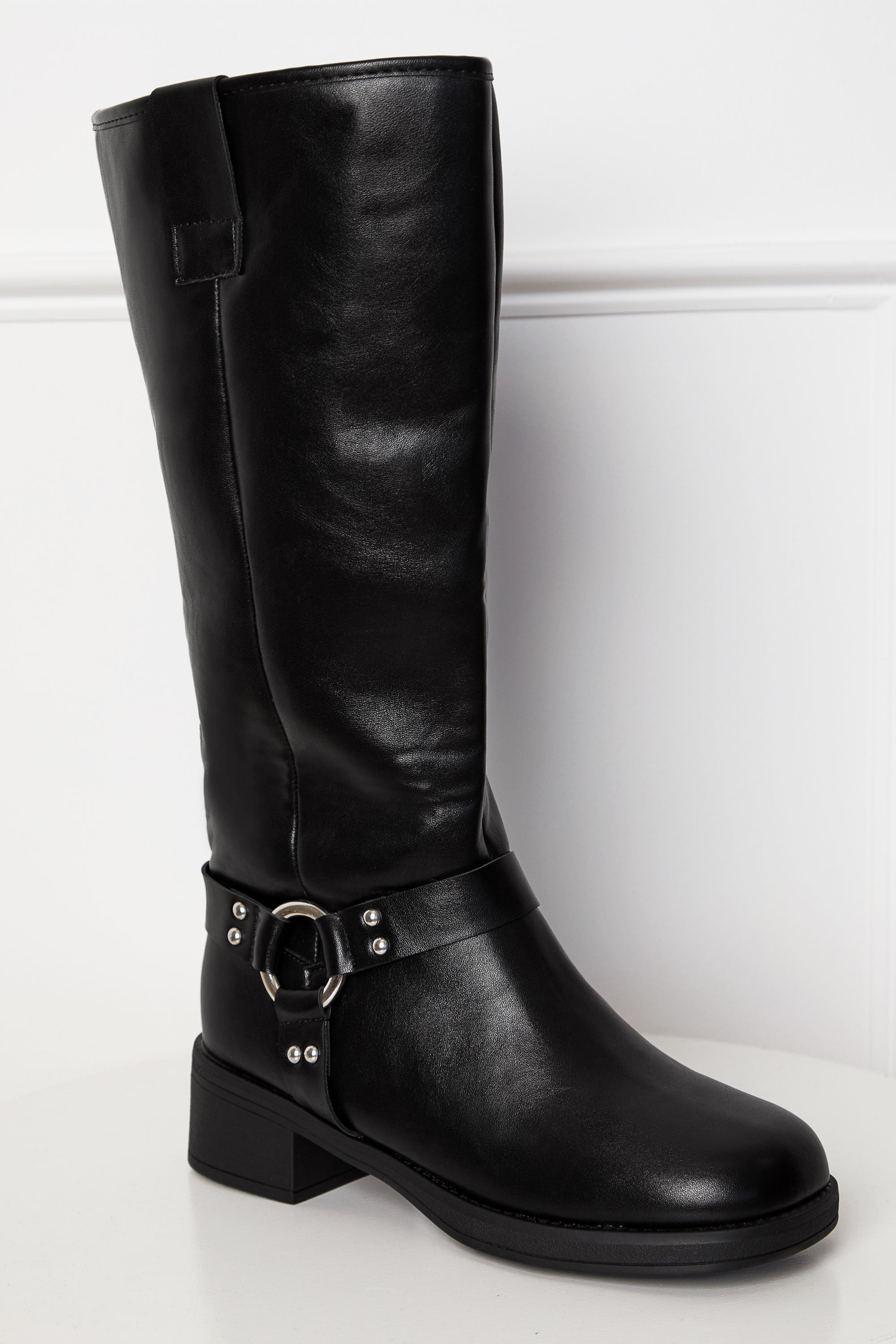 Indulge in the luxurious designer-inspired Alima Black Motorcycle Boots. With a sleek silver circle buckle detail and a secret zipper closure, these boots exude a sophisticated and exclusive style. Upgrade your wardrobe with these must-have boots that are both stylish and functional.