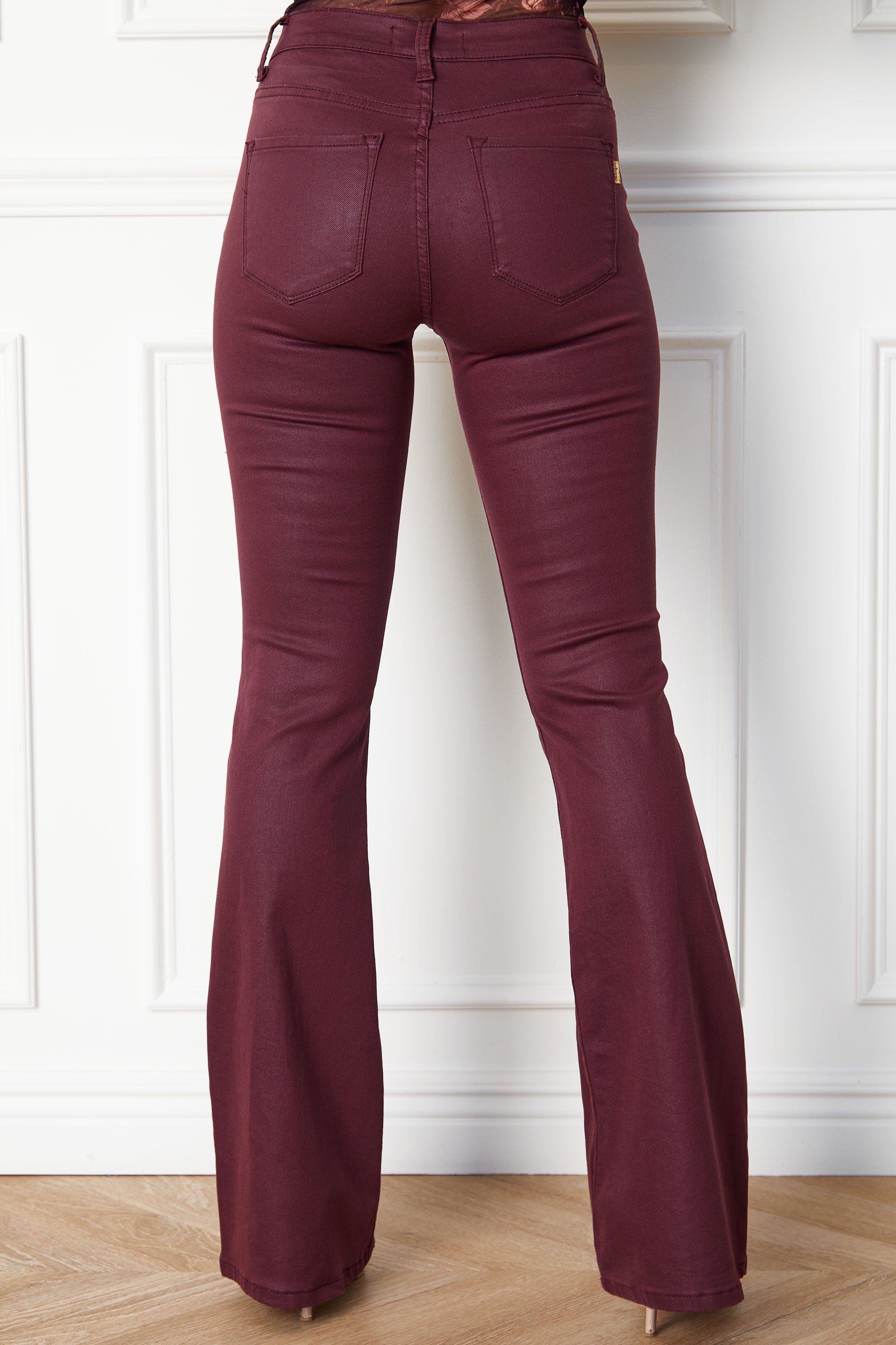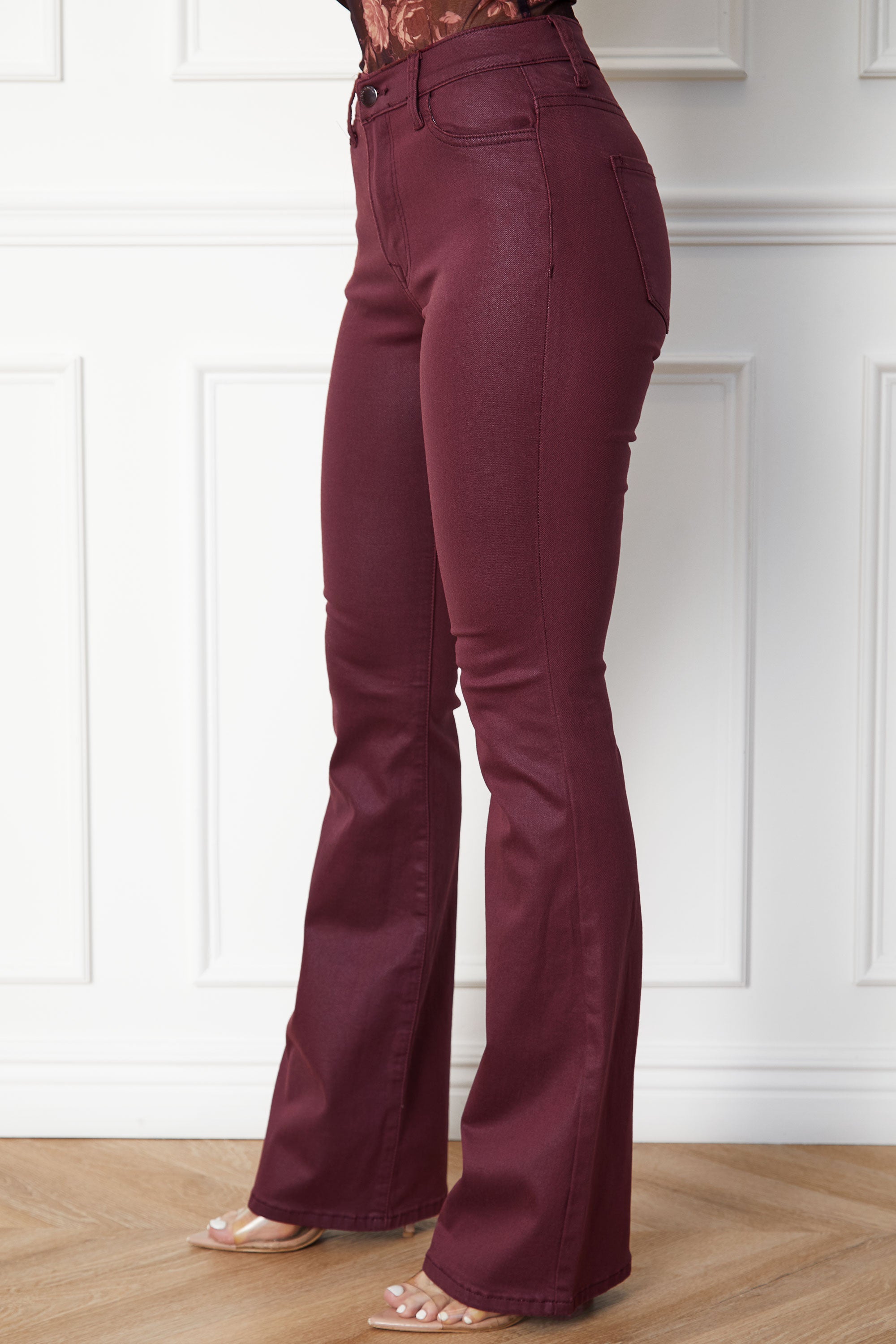 Elevate your Fall wardrobe with the Fran Burgundy Vegan Leather Pants. Crafted from premium, stretchy material, these flare pants are not only stylish but also comfortable. The rich burgundy color adds a touch of sophistication to any outfit. Perfect for the fashion-forward, conscious consumer.